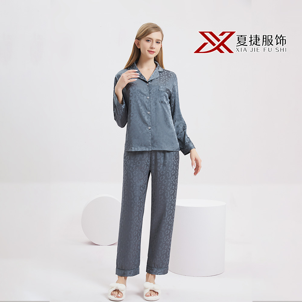 Комплект домашней одежды из темно-серого атласа с леопардовым узором
